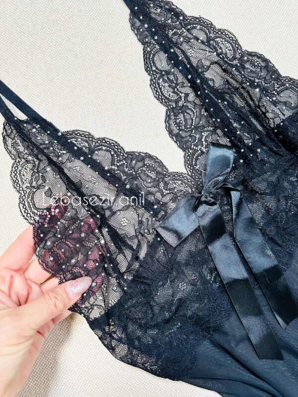 جزئیات دانتل و گیپور در لباس خواب زنانه توری.